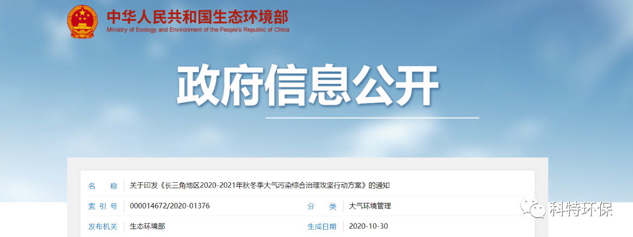 生態(tài)環(huán)境部、國(guó)家發(fā)展和改革委員會(huì)、工業(yè)和信息化部等10部門(mén)與上海、江蘇、浙江、安徽等4?。ㄊ校┤嗣裾?lián)合印發(fā)《長(zhǎng)三角地區(qū)2020-2021年秋冬季大氣污染綜合治理攻堅(jiān)行動(dòng)方案》(以下簡(jiǎn)稱《行動(dòng)方案》)